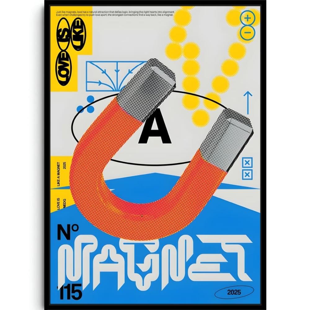 يصف ملصقاته بأنها عمل تجريبي، يستخدم الحروف والصور ذات الطابع القديم للتعبير.